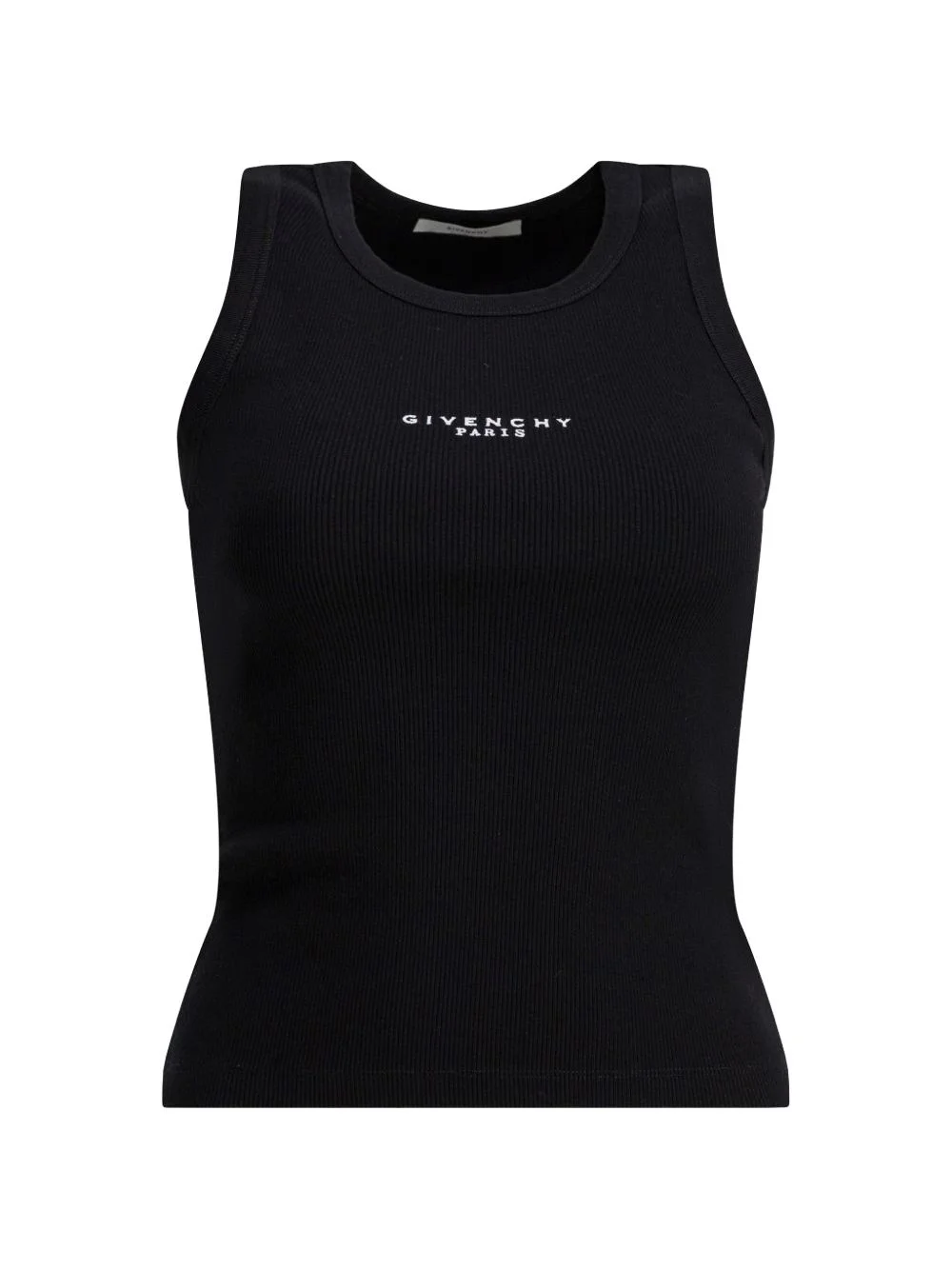 slim-fit logo-detail ribbed cotton top Highlights - Black - Logo - Ribbed knit - Round neck - Sleeveless Imported Composition Cotton 98%, Lycra 2% Washing instructions Read Manufacturer Guidelines