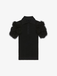 - Short-sleeved polo shirt in knit. - Polo button-down collar. - Pompoms on the sleeves. - Small 4G emblem embroidered on the upper back. - Slim fit. - Model measures 5.8 Feet and wears a size XS.