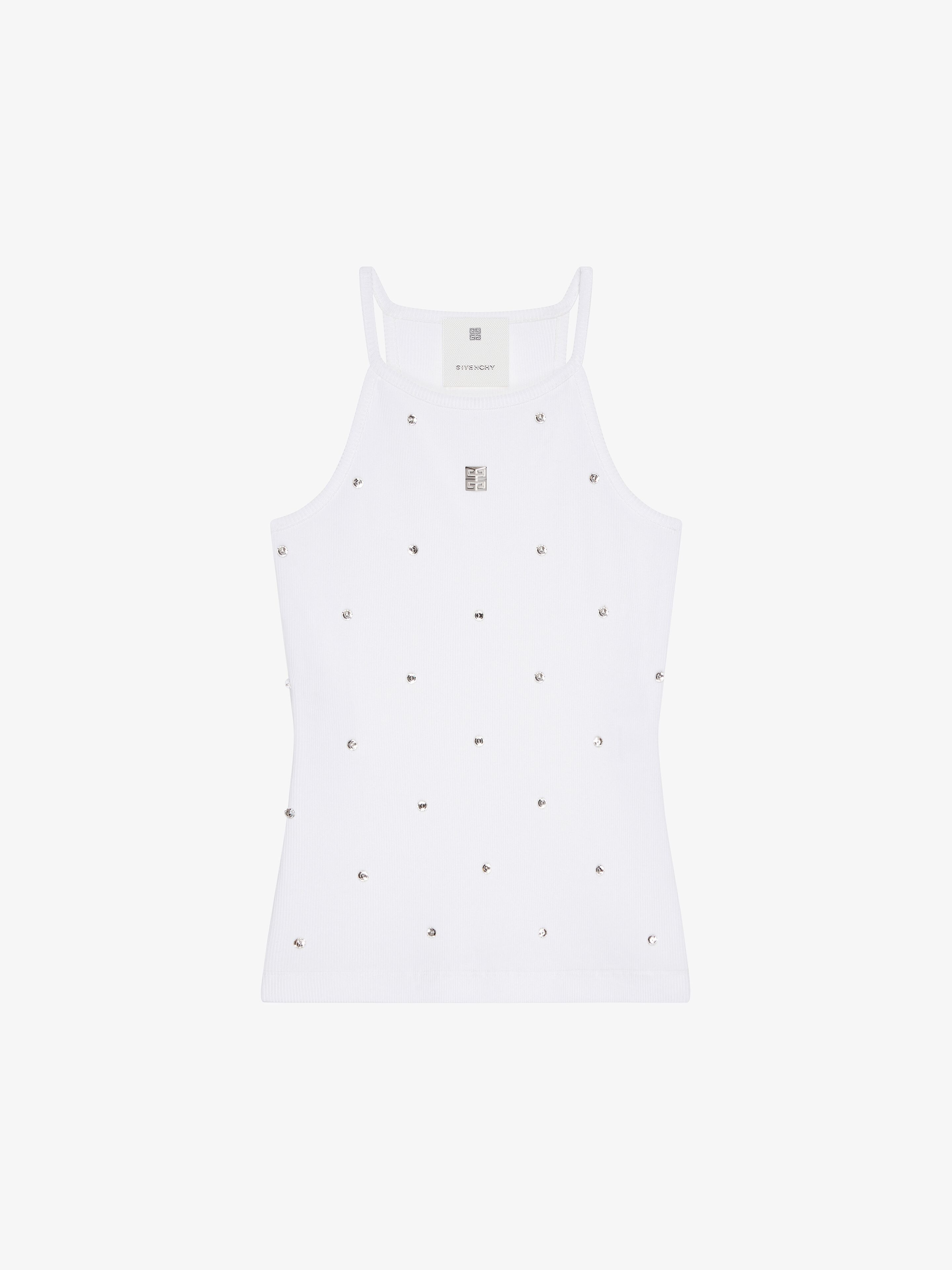 - Tank top in ribbed cotton. - Embroidered crystals on the front. - 4G metal piece on the front. - Slim fit. - Model measures 5.8 Feet and wears a size XS.