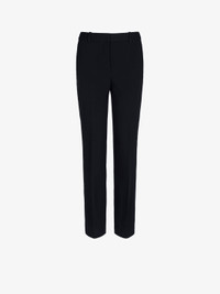 Slim-fit pants in black grain de poudre with two side pockets and two welt pockets on the back. Silk lining. Product code: BW508D1009-001 Composition: 100% wool. Lining: 100% silk. Size & Fit This piece has been designed as a slim fit. Model wears a size 36. Model size: chest 80 cm, waist 60 cm, hips 80 cm, height 178 cm. Other Country of origin: Italy Dry clean recommended Iron at maximum soleplate temperature (110°C) without steam Do not tumble dry Do not bleach