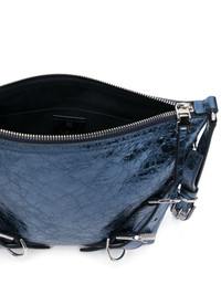 Voyou cross body bag Highlights - Indigo blue - Calf leather - Laminated metallic effect - Cracked effect - Top zip fastening - Adjustable shoulder strap - Front decorative buckle-strap detailing - Logo stamp to the front - Main compartment - Internal patch pocket - Internal logo patch - Full lining - This piece comes complete with a protective dust bag. Made in Italy Composition Calf Leather 100% SIZE & FIT Model measurements Height 5 ft 11 in(1.8 m) Bust/Chest 32.28 in(82 cm) Hips 35.03 in(89 cm) Waist 24.8 in(63 cm) Measurement DEPTH 3.14 in(8 cm) HEIGHT 8.66 in(22 cm) STRAP 40.94 in(104 cm) WIDTH 8.66 in(22 cm)