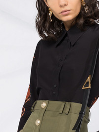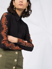 snakeskin effect button up shirt Take a walk on the wild side. Snakeskin effect details add an opulent touch to this piece. Suits you! Featuring a collar style, a front button fastening, long sleeves, button cuffs and snakeskin effect details. Made in Italy Composition Silk 100% SIZE & FIT Model measurements Height 5 ft 9 in(1.75 m) Bust/Chest 34.64 in(88 cm) Hips 35.03 in(89 cm) Waist 24.8 in(63 cm) FittingInformation This piece fits true to size. We recommend you get your regular size Cut for a slim fit Made with a lightweight non-stretch fabric Washing instructions Dry Clean Only