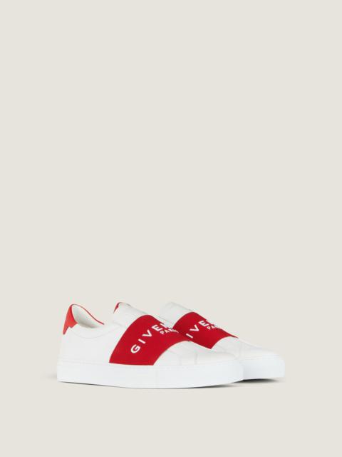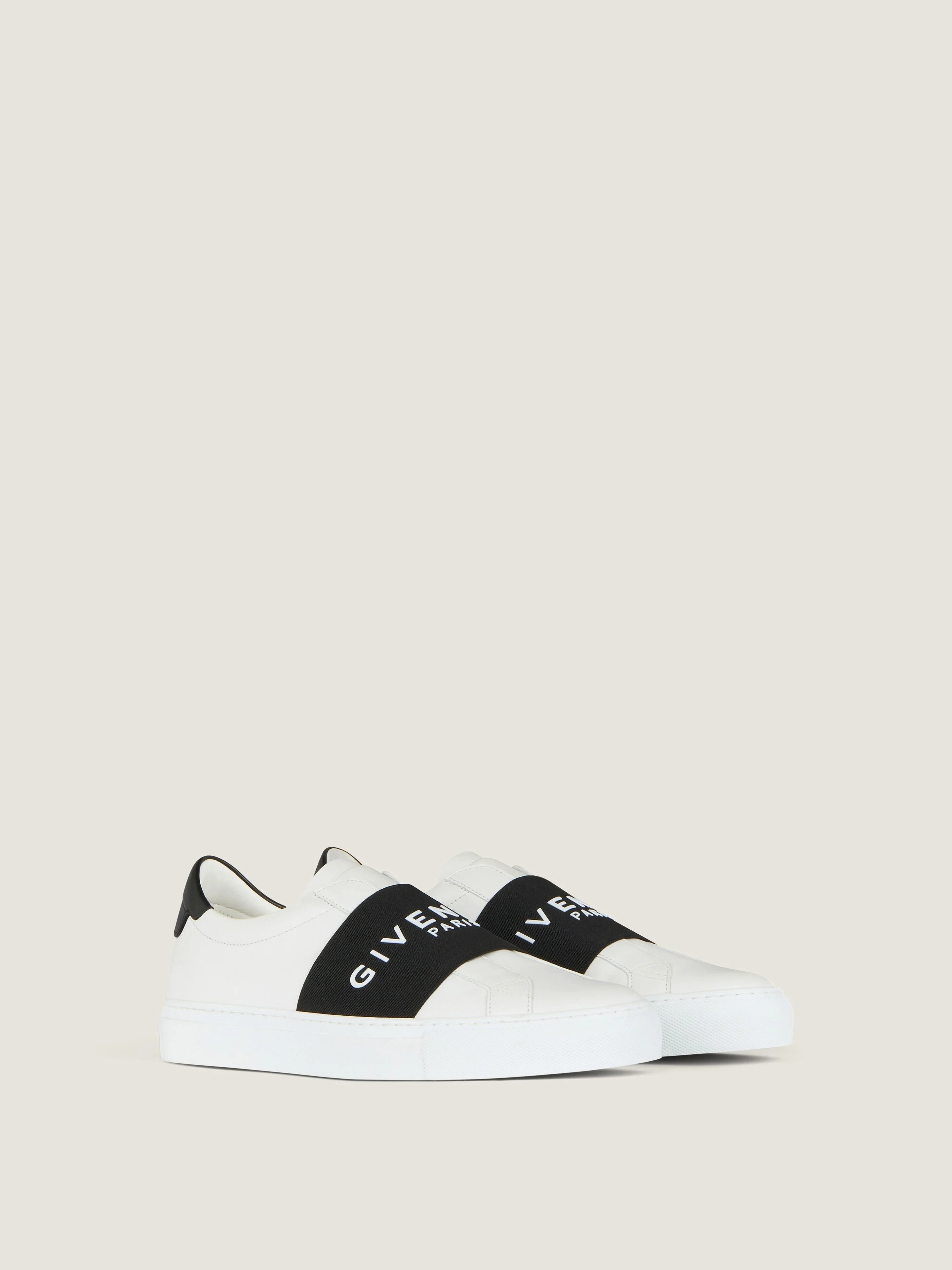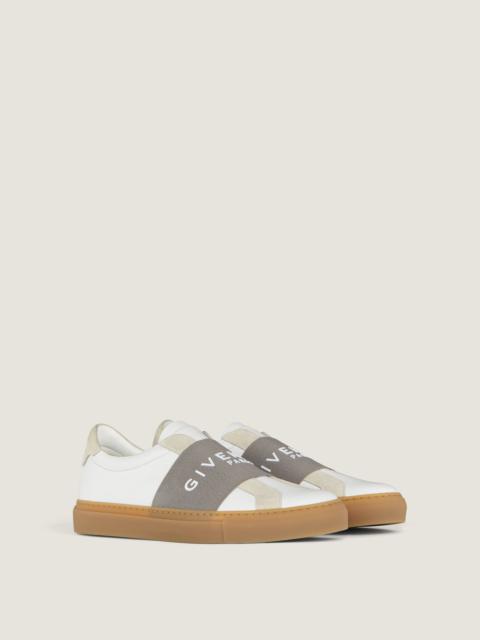 - Low sneakers in soft calfksin leather. - Urban Street line. - Wide elastic band with raised GIVENCHY Paris signature on the top. - GIVENCHY Paris signature on the back of the heel.