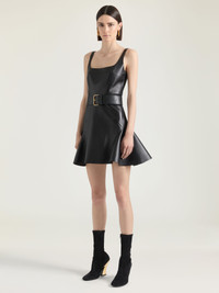 FLUTED MINI DRESS IN LEATHER