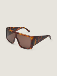 - Sunglasses in acetate. - Square line. - Mask shape. - Brown lenses. - Golden GIVENCHY signature engraved on the temples. - Golden-finish metal detail on the hinges. - 100% UVA/UVB protection. - Weight: 70g. - Model comes in a soft case.