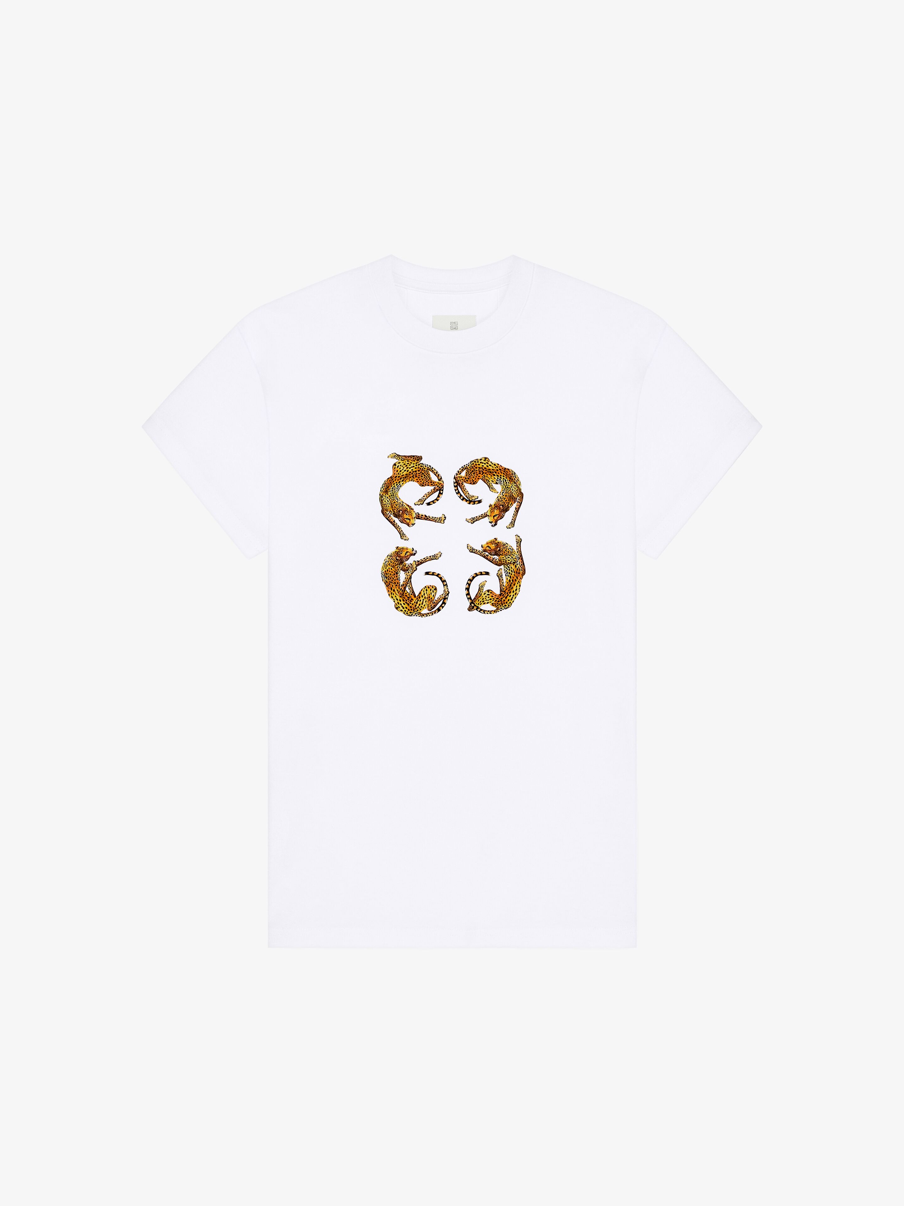 - Short-sleeved t-shirt in cotton. - Crew neck. - 4G leopard print. - Small GIVENCHY signature embroidered on the upper back. - Classic fit. - Model measures 5.8 Feet and wears a size XS.