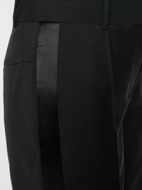 tailored fitted trousers Infused with the label’s signature dark romanticism and urban styling, French fashion house Givenchy was originally founded in 1952 by acclaimed couturier Hubert de Givenchy. Under the creative direction of Clare Waight Keller, the cult label continues to celebrate the label’s house codes through sharp tailoring and expert craftsmanship. These black silk and wool blend tailored fitted trousers are a staple piece and feature a concealed fastening, a waistband with belt loops, a slim fit, a stripe detail to the side, side pockets and rear pockets. Made in Italy Composition Outer: Viscose 72%, Mohair 60%, Wool 40%, Silk 28% Lining: Silk 100% SIZE & FIT Model measurements Height 5 ft 10 in(1.77 m) Bust/Chest 35.03 in(89 cm) Hips 35.03 in(89 cm) Waist 23.62 in(60 cm) Washing instructions Dry Clean Only