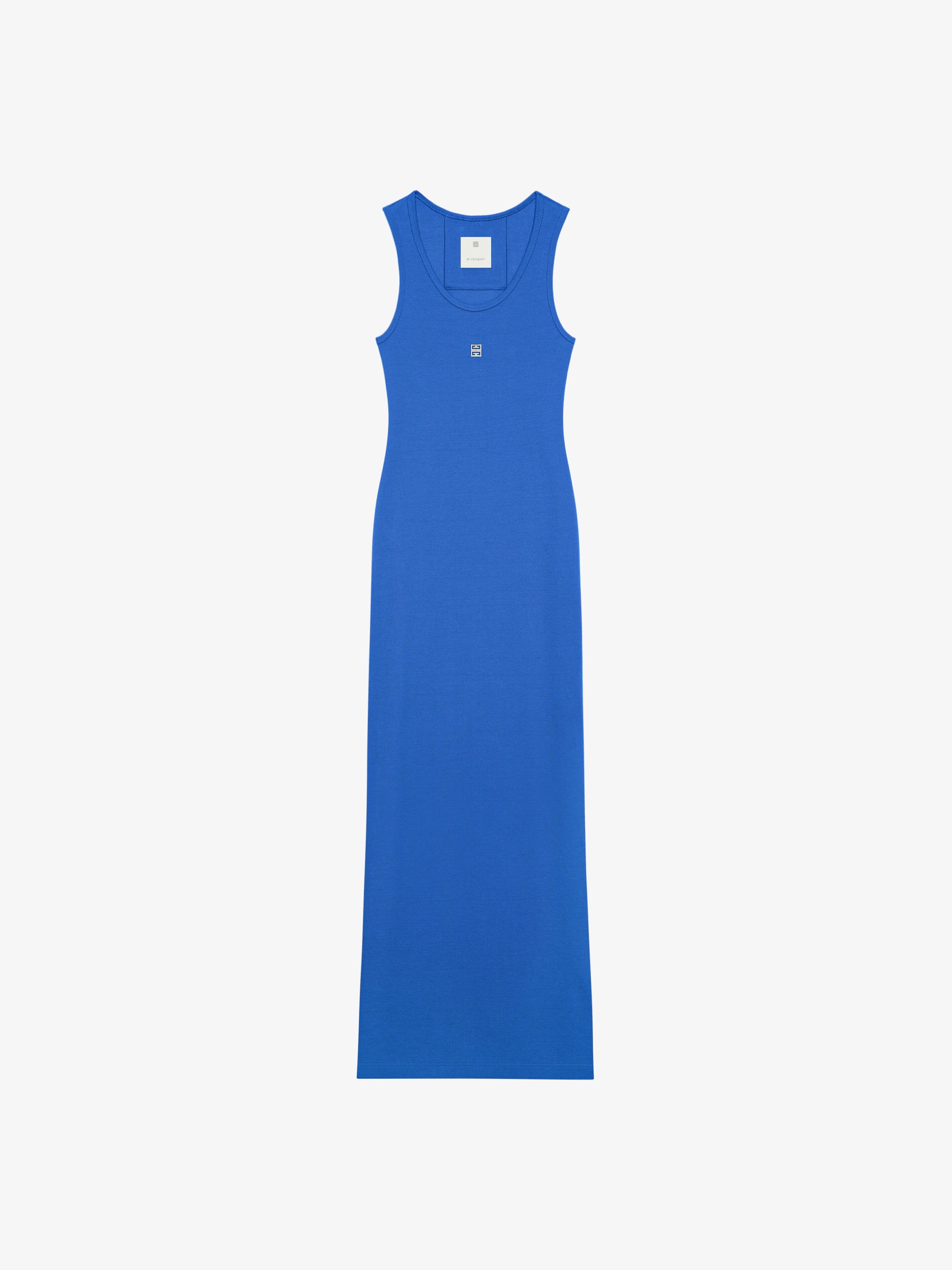 - Long tank dress in ribbed cotton knit. - Crew neck. - 4G metal piece on the front. - Fitted cut. - Model measures 69.7 in and wears a size XS.