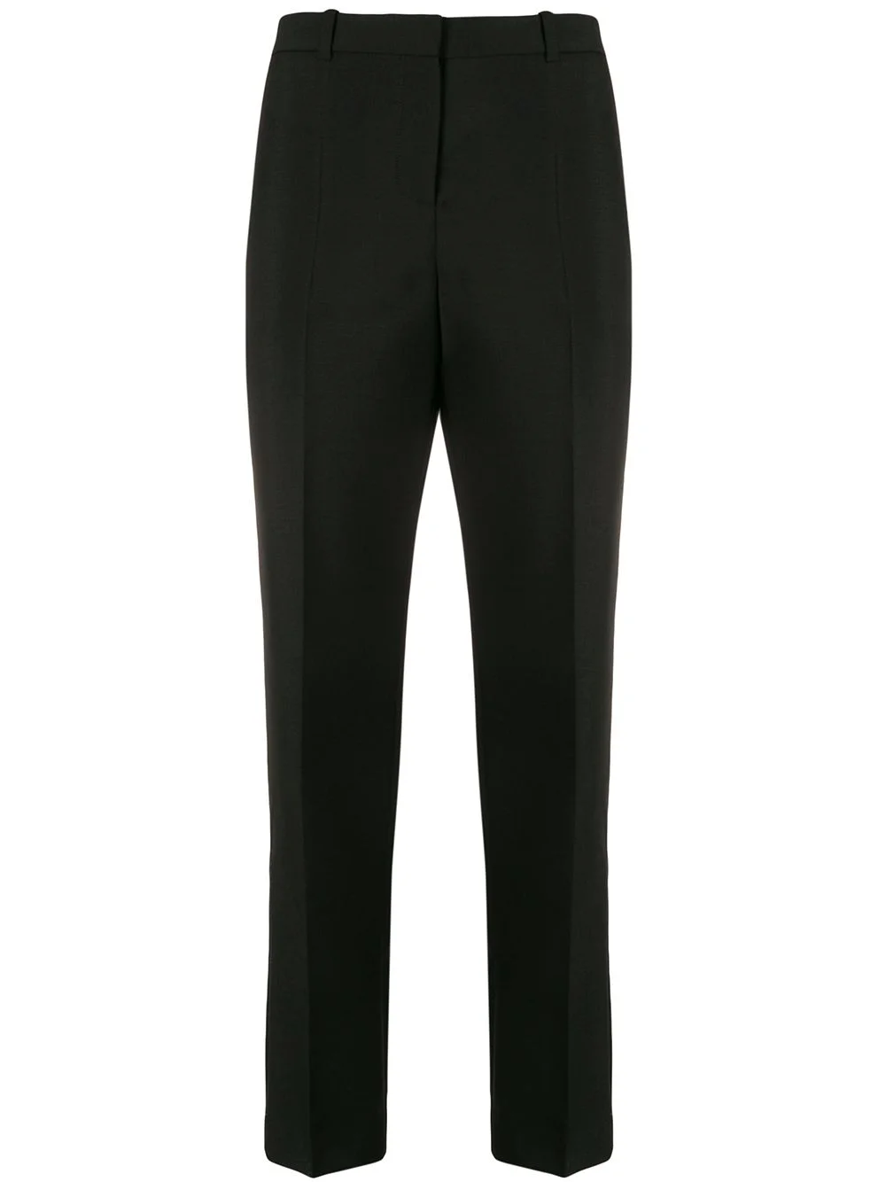 tapered trousers Black wool, mohair, cotton blend and silk tapered trousers from Givenchy featuring a high rise, a waistband with belt loops, a button and zip fly, a tapered leg, side slit pockets and rear welt pockets. Made in Italy Composition Lining: Silk 100% Outer: Cotton 64%, Mohair 60%, Wool 40%, Polyester 19%, Modal 13%, Polyamide 4% SIZE & FIT Model measurements Height 5 ft 10 in(1.78 m) Bust/Chest 33.07 in(84 cm) Hips 35.82 in(91 cm) Waist 26.96 in(68.5 cm) Washing instructions Dry Clean Only