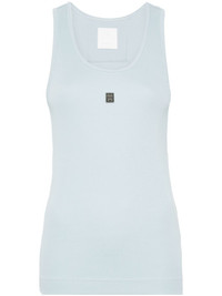 4G tank top Highlights - Light blue - Cotton blend - Fine ribbed - Signature 4g motif - Silver-tone logo plaque - Round neck - Sleeveless - Straight hem Imported Composition Cotton 98%, Elastane 2% SIZE & FIT Model measurements Height 5 ft 9 in(1.74 m) Bust/Chest 34.64 in(88 cm) Hips 36.61 in(93 cm) Waist 26.37 in(67 cm) FittingInformation Designed for a slim fit that sits just away from the body offering a close yet comfortable fit Made from a midweight stretch fabric, this piece offers elasticity and flexibility when worn Measurement BUST 27.99 in(71.1 cm) LENGTH 25.98 in(66 cm) WAIST 27.99 in(71.1 cm)