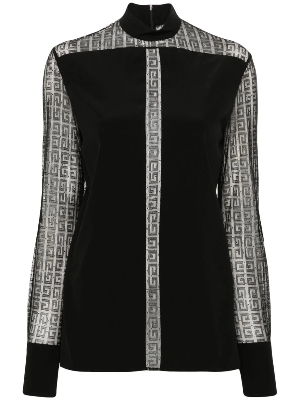 4G-pattern silk blouse Highlights - Jet black - Silk - Signature 4g motif - Monogram jacquard - Semi-sheer panels - Stand-up collar - Long sleeves - Buttoned cuffs - Short rear zip fastening - Straight hem Made in Italy Composition Silk 100%, Polyamide 92%, Elastane 8% SIZE & FIT Model measurements Height 5 ft 11 in(1.8 m) Bust/Chest 33.07 in(84 cm) Hips 37.4 in(95 cm) Waist 25.19 in(64 cm) Measurement SLEEVE LENGTH 24.48 in(62.2 cm) LENGTH 25.98 in(66 cm) WAIST 37.99 in(96.5 cm) BUST 37 in(94 cm) FittingInformation Designed to be unstructured, offering a loose fit throughout Washing instructions Dry Clean Only