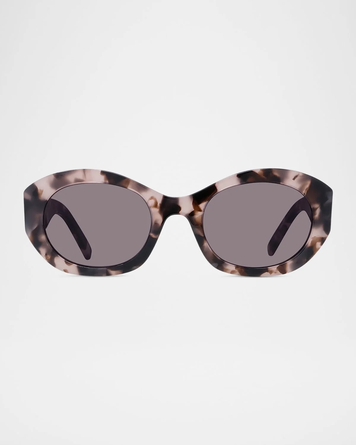 - Givenchy oval sunglasses in acetate - Eye/bridge/temple (in mm): 52-22-130 - Solid lenses - Saddle nose bridge - 4G logo functional hinge - Thick, tapered arms - Acetate - 100% UVA/UVB protection - Made in Italy - Proposition 65 warning for California residents - This product contains perfluoroalkyl and polyfluoroalkyl substances (PFAS). For more information, please visit the manufacturer’s website.