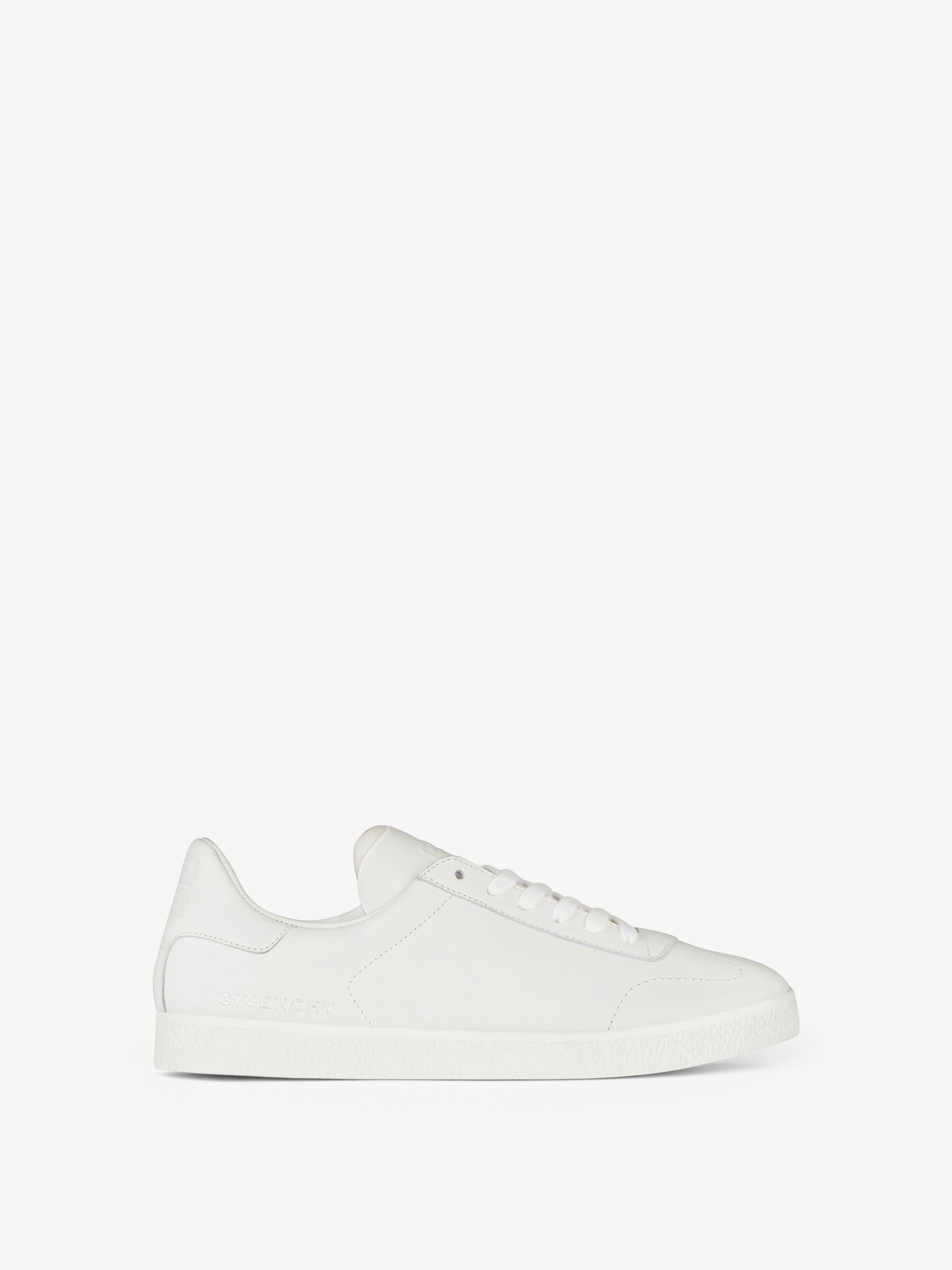 - Low-top sneakers in calfskin leather. - Town line. - Stitching detail on the front. - Silvery GIVENCHY signature debossed on the side. - 4G emblem debossed on the tongue and on the backtop. - Vulcanized effect sole. - GIVENCHY 4G signature debossed on the leather insole.