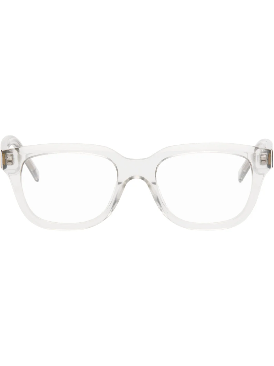 Rectangular transparent acetate-frame optical glasses. · Integrated nose pads · Inset logo at temples · Exposed core wires · Includes case · Size: 51.19 145 Supplier color: Grey/Other Acetate. Made in China 252278F004003