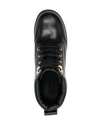 Trekker leather combat boots Highlights - Black - Calf leather - Panelled design - Ankle-length - Logo-debossed tongue - Pull-tab at the heel - Front lace-up fastening - Round toe - Branded leather insole - Chunky rubber lug sole - Gold-tone hardware Made in Italy Composition Leather 100% SIZE & FIT Measurement HEEL 1.96 in(5 cm) HEIGHT 5.11 in(13 cm) Sole height 1.37 in(3.5 cm)