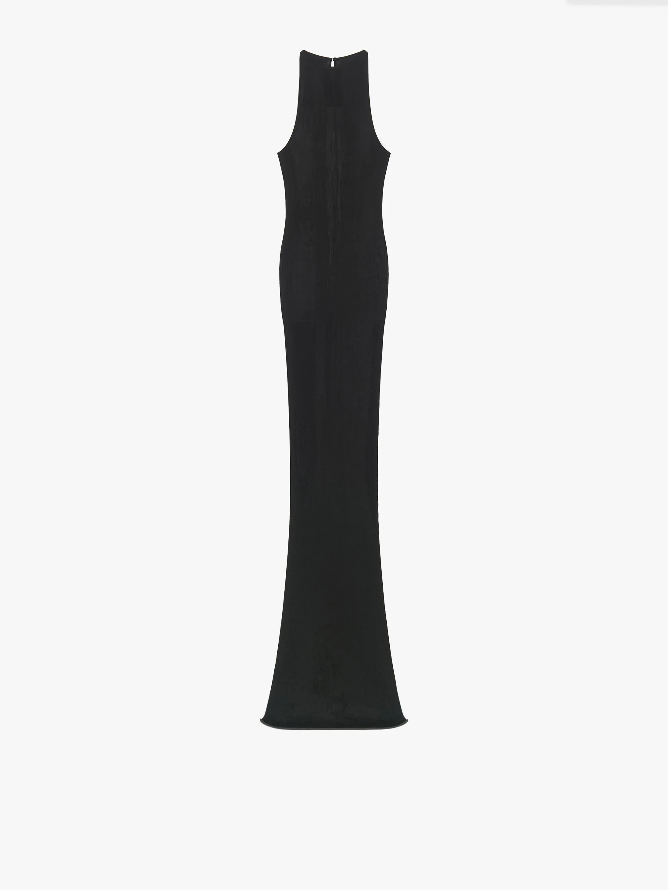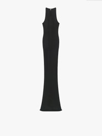 - Long sleeveless tube dress in thin-ribbed silk jersey. - Color: black. - Crew-neck. - Comfortable fitted cut.