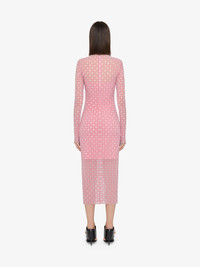 - Midi long-sleeved dress in transparent tulle. - Crew neck. - Monogram 72 in flocked velvet. - Zipped closure on the back. - Short tone-on-tone under-dress. - Comfortable fitted cut. - Model measures 5.8 Feet and wears a size 36.