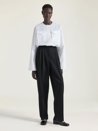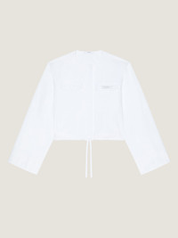 - Long-sleeved shirt in cotton poplin. - Classic collar. - Gros grain ribbon with printed GIVENCHY Paris on the chest. - Hidden button closure. - Two chest flap pockets. - Drawstring on the bottom. - Cropped fit. - Model measures 5.8 Feet and wears a size 36.