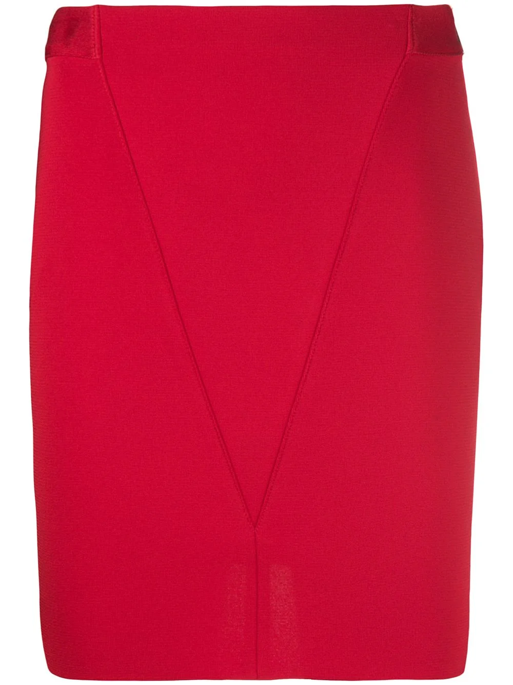 fitted skirt Standing as Givenchy’s first female artistic director, Clare Waight Keller shows her second ready-to-wear collection for the adored Parisian fashion house, whose signature French glamour was reinvented into immaculate tailoring, sharp silhouettes and luxury fabrications. Crafted in Italy, this red fitted skirt from Givenchy features a high rise, a side zip fastening, a fitted silhouette, a short length and a V-shaped cut-out detail to the front and to the rear. Made in Italy Composition Viscose 80%, Polyamide 18%, Spandex/Elastane 2% SIZE & FIT Model measurements Height 5 ft 10 in(1.78 m) Bust/Chest 27.95 in(71 cm) Hips 35.82 in(91 cm) Waist 24.01 in(61 cm) Washing instructions Dry Clean Only