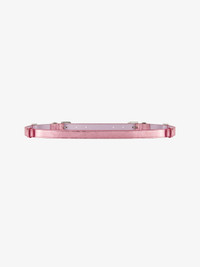 - Belt in laminated lambskin leather. - Voyou line. - Silvery-finish buckle and rings. - Width : 0.8 in.