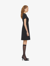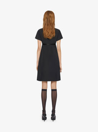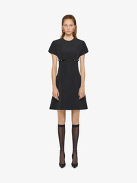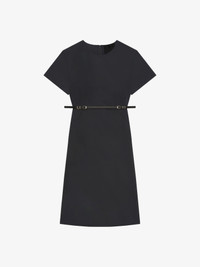 - Mid-length short-sleeved dress in cotton taffetas. - Voyou line. - Crew neck. - Adjustable and removable satin belt with GIVENCHY engraved metal buckles. - Invisible zipped closure on the back. - Silvery-finish metal details. - Model measures 5.8 Feet and wears a size 36.