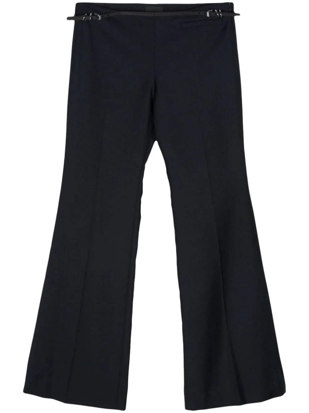 Voyou flared trousers Highlights - Midnight blue - Wool-mohair blend - Interlock twill weave - Concealed side zip fastening - Low-rise - Elasticated waistband - Belted waist - Side welt pocket - Pressed crease - Straight leg - Flared hem Made in Italy Composition Lining: Cotton 100% Outer: Wool 73%, Mohair 27%