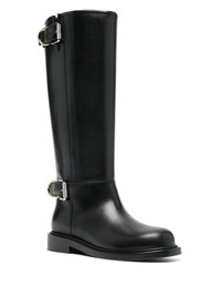 buckled leather boots Highlights - Black - Calf leather - Low stacked heel - Double buckle fastening - Silver-tone buckle fastening - Gold-tone hardware - Round toe - Branded leather insole - Leather sole - Knee-length Made in Italy Composition Lining: Calf Leather 100% Outer: Calf Leather 100% Sole: Calf Leather 100% SIZE & FIT Measurement HEEL 1.37 in(3.5 cm) HEIGHT 15.35 in(39 cm) Sole height 0.59 in(1.5 cm)