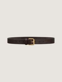 - Long belt in shiny calfskin leather. - Voyou line. - GIVENCHY engraved metal end-tip. - Golden-finish metal details. - Width : 1.2 in.