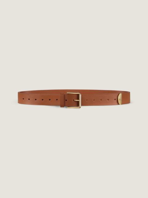 - Long belt in shiny calfskin leather. - Voyou line. - GIVENCHY engraved metal end-tip. - Golden-finish metal details. - Width : 1.2 in.