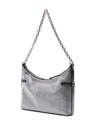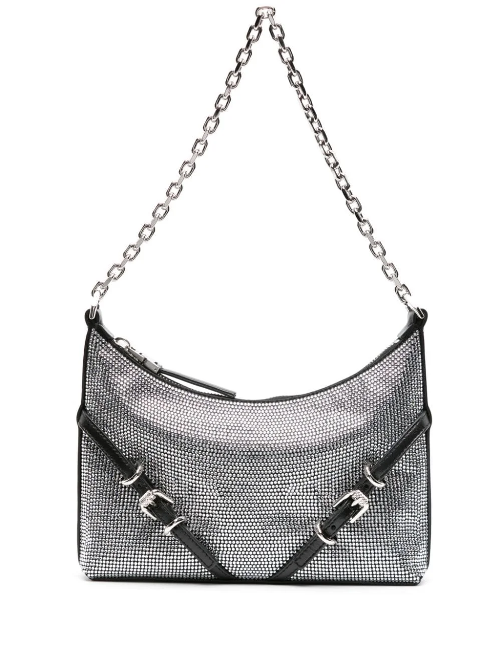 Voyou Party rhinestone-embellishment bag Highlights - Black/silver - Faux-leather panel detail - Rhinestone embellishment - Decorative buckle detail - Logo-engraved silver-tone hardware - Internal logo patch - Top zip fastening - Single chain-link top handle - Main compartment - Full lining - This piece comes complete with a protective dust bag. Made in Italy Composition Outer: Viscose 72%, Silk 28% SIZE & FIT Model measurements Height 5 ft 10 in(1.78 m) Bust/Chest 32.67 in(83 cm) Hips 35.43 in(90 cm) Waist 23.22 in(59 cm) Measurement DEPTH 1.57 in(4 cm) HANDLE 9.84 in(25 cm) HEIGHT 5.9 in(15 cm) WIDTH 8.66 in(22 cm)