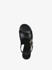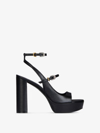 - Platform sandals in tumbled calfskin leather. - Voyou line. - Two straps with golden and silvery-finish metal buckles. - Platform and wide heel. - Leather insole with GIVENCHY signature. - Heel height : 4.5 in. - Platform height : 1.2 in.
