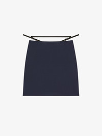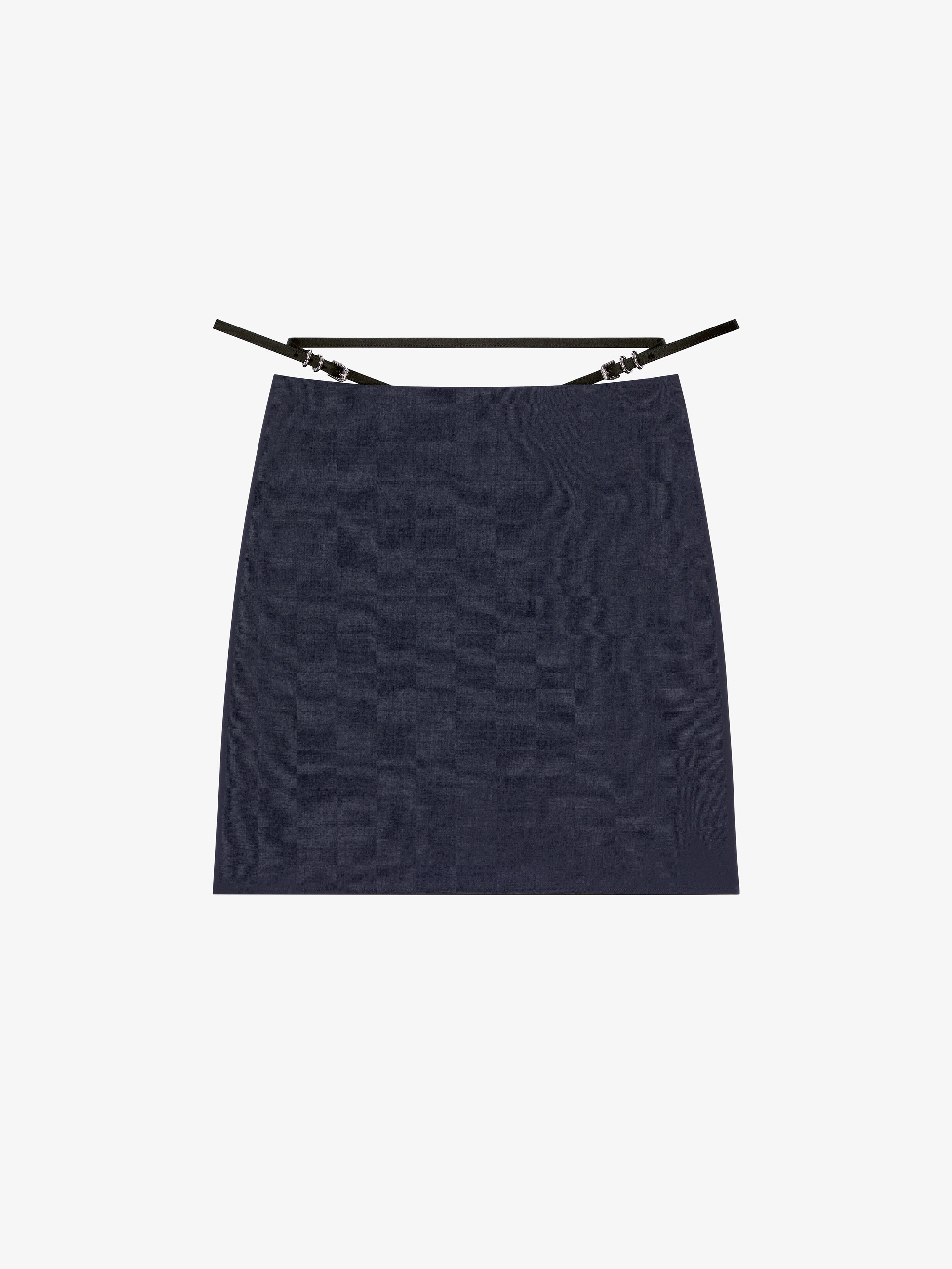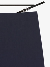 - Mid-length skirt in wool and mohair. - Voyou line. - Adjustable satin belt with GIVENCHY engraved metal buckles. - Hidden zipped closure on the side. - Silvery-finish metal details. - A-line cut. - Model measures 5.8 Feet and wears a size 36.