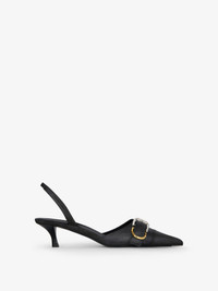 - Slingback pumps in tumbled calfskin leather. - Voyou line. - Strap on top with metal buckle. - Thin back strap. - GIVENCHY signature debossed on the leather insole. - Golden and silvery-finish metal details. - Pointy toe. - Thin heel. - Heel height : 1.8 in.