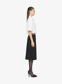 - Mid-length wrap skirt in light cotton taffetas. - Voyou line. - Adjustable satin belt with GIVENCHY engraved metal buckles. - Hidden button closure. - Silvery-finish metal details. - Model measures 5.8 Feet and wears a size 36.