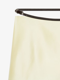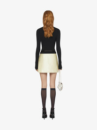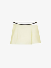 - Mini wrap skirt in silk satin duchesse. - Voyou line. - Adjustable satin belt with GIVENCHY engraved metal buckles. - Hidden button closure. - Silvery-finish metal details. - Model measures 69.7 in and wears a size 36.