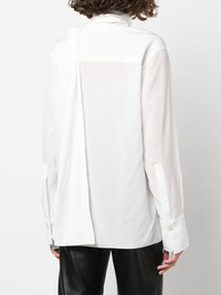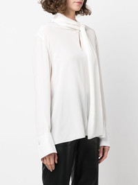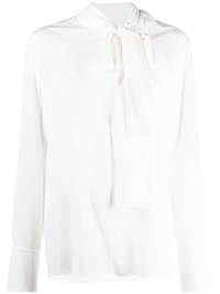 pussy-bow silk blouse off-white silk pussy-bow collar seam detailing long sleeves buttoned cuffs straight hem Made in Italy Composition Silk 100% SIZE & FIT Model measurements Height 5 ft 9 in(1.76 m) Bust/Chest 33.07 in(84 cm) Hips 34.64 in(88 cm) Waist 25.59 in(65 cm) FittingInformation This piece fits true to size. We recommend you get your regular size Cut for a loose fit Made with a lightweight non-stretch fabric