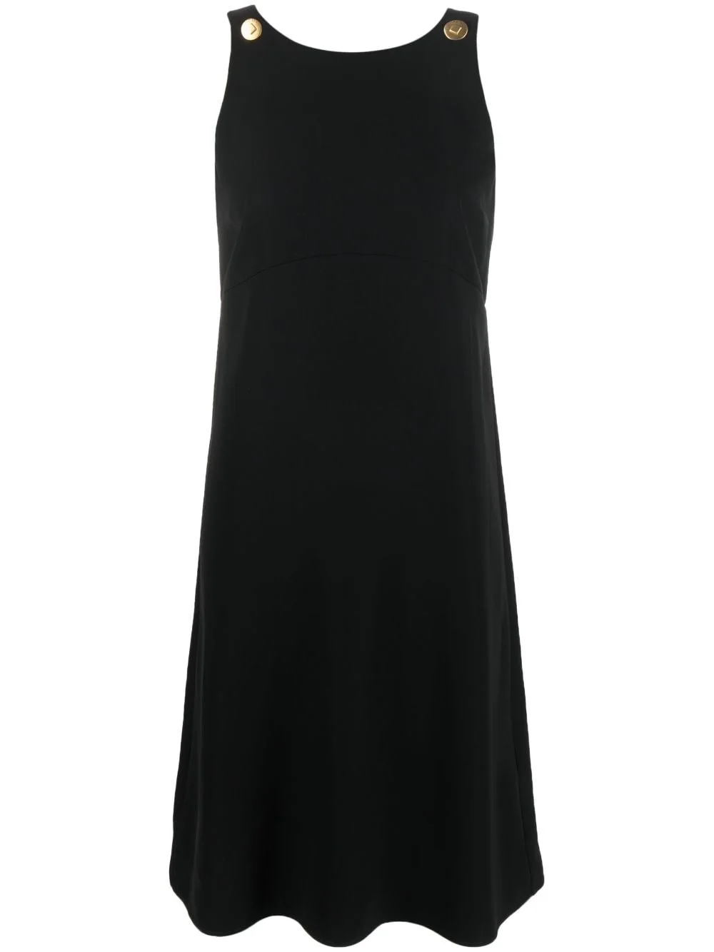 button-detail sleeveless dress Highlights - Black - Shift style - Decorative button detailing - Gold-tone buttons - Round neck - Concealed rear zip fastening - Sleeveless - Straight hem - Above-knee length Made in Italy Composition Polyester 100% SIZE & FIT Model measurements Height 5 ft 10 in(1.77 m) Bust/Chest 29.92 in(76 cm) Hips 34.25 in(87 cm) Waist 23.62 in(60 cm) FittingInformation Designed for a close fit at the chest with a loose fit over the waist and hips Made from a midweight stretch fabric, this piece offers elasticity and flexibility when worn This piece fits true to size – take your usual size Washing instructions Dry Clean Only