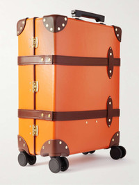 EDITORS'NOTES Globe-Trotter's 'Centenary' collection marks 100 years of the brand's most iconic luggage. This suitcase is made from the brand's patented vulcanized fiberboard that's lightweight but ultra durable and finished with supple leather accents at the corners. There's space inside for two to three days' worth of clothes and cosmetics. Carbon steel locks ensure peace of mind when traveling. SIZE & FIT This item’s measurements are: - Height: 21cm / 8.3in - Width: 52cm / 20.5in - Depth: 38cm / 15in DETAILS & CARE - Orange vulcanized fiberboard, brown leather - Top and side handles, telescopic handle - Four wheels, brown leather straps and trims (Calf), gold-tone hardware, feet, four internal straps - Fully lined - Push lock fastening with keys, buckle-fastening straps - Weighs approximately 9.3lbs/ 4.2kg - Designer color: Marmalde/ Brown