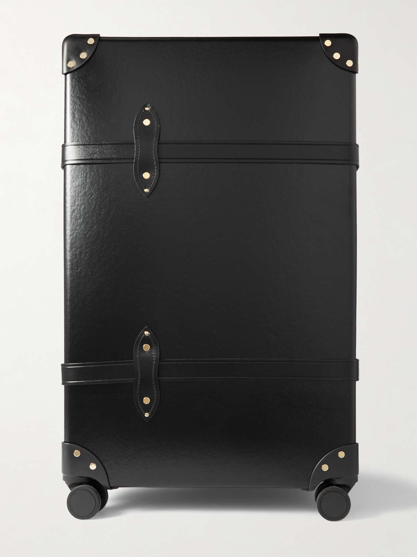 EDITORS'NOTES This XL version of Globe-Trotter's 'Centenary' suitcase will comfortably stow your belongings for over two weeks' worth of travelling. Handcrafted in England from vulcanized fiberboard, its trimmed with leather using a time-honored process that takes five days to complete. It has a water-resistant lining, carbon steel locks to keep everything secure and 360-degree rotating wheels for effortless maneuvering. SIZE & FIT This item’s measurements are: - Depth: 36cm / 14.2in - Height: 72cm / 28.3in - Width: 44cm / 17.3in DETAILS & CARE - Black vulcanized fiberboard - Top and side handles, telescopic handle - Four wheels, black leather straps and trims (Calf), gold-tone hardware, feet, four internal straps - Fully lined in canvas - Push lock fastening with keys, buckle-fastening straps - Weighs approximately 13.67lbs/ 6.2kg - Designer color: Black/ Gold