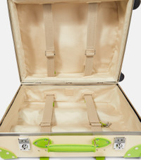 Product Details - Material: vulcanized fiber - Lining: fabric - Made in the UK - Designer color name: Ivory & Parrot Green - Chrome - Trim: leather - Closure: push-lock fastening - Top handle - Item number: P00874599 Size & Fit - Height 49cm-19.5" - Width 38cm-15" - Depth 21cm-8.5"