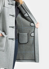 Background A considered nod to our roots, the Women's Freda Duffle takes its name from the Gloverall founding family. Expertly crafted using a double-faced Italian wool blend, it offers warmth and substance—right through to its button-adjusted hood. On milder days, wear the hood down to reveal a flash of its tartan interior—a subtle detail that speaks to the coat’s thoughtful construction. Buffalo horn toggles and soft leather loops lend a refined finish, while a fixed shoulder cape and detachable throat tab ensure winter warmth without compromise. Design Details - Made in England - Regular Fit - Fixed shoulder cape - Detachable throat tab - Pancake hood - Knee Length - Inside patch pocket - Unlined - Buffalo horn toggles and leather loop fastenings - Style Code: LC3120 Fabric & Care - 80% Wool, 20% polyamide - Plain face, tartan reverse - Fabric Weight: 960g/lm - Dry clean only - Do not machine wash - Do not tumble dry - Cool iron - Do not bleach - Contains animal product
