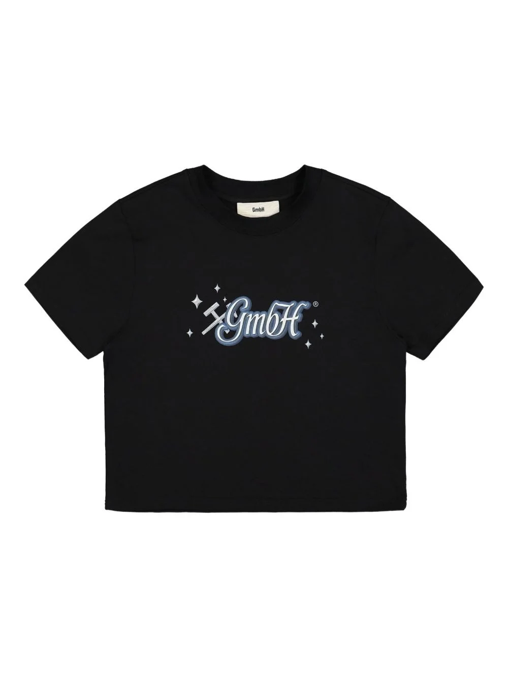 logo-print cropped T-shirt Highlights - Black - Crew neck - Short sleeves - Straight hem Imported Composition Cotton 95%, Spandex/Elastane 5% Washing instructions Machine Wash