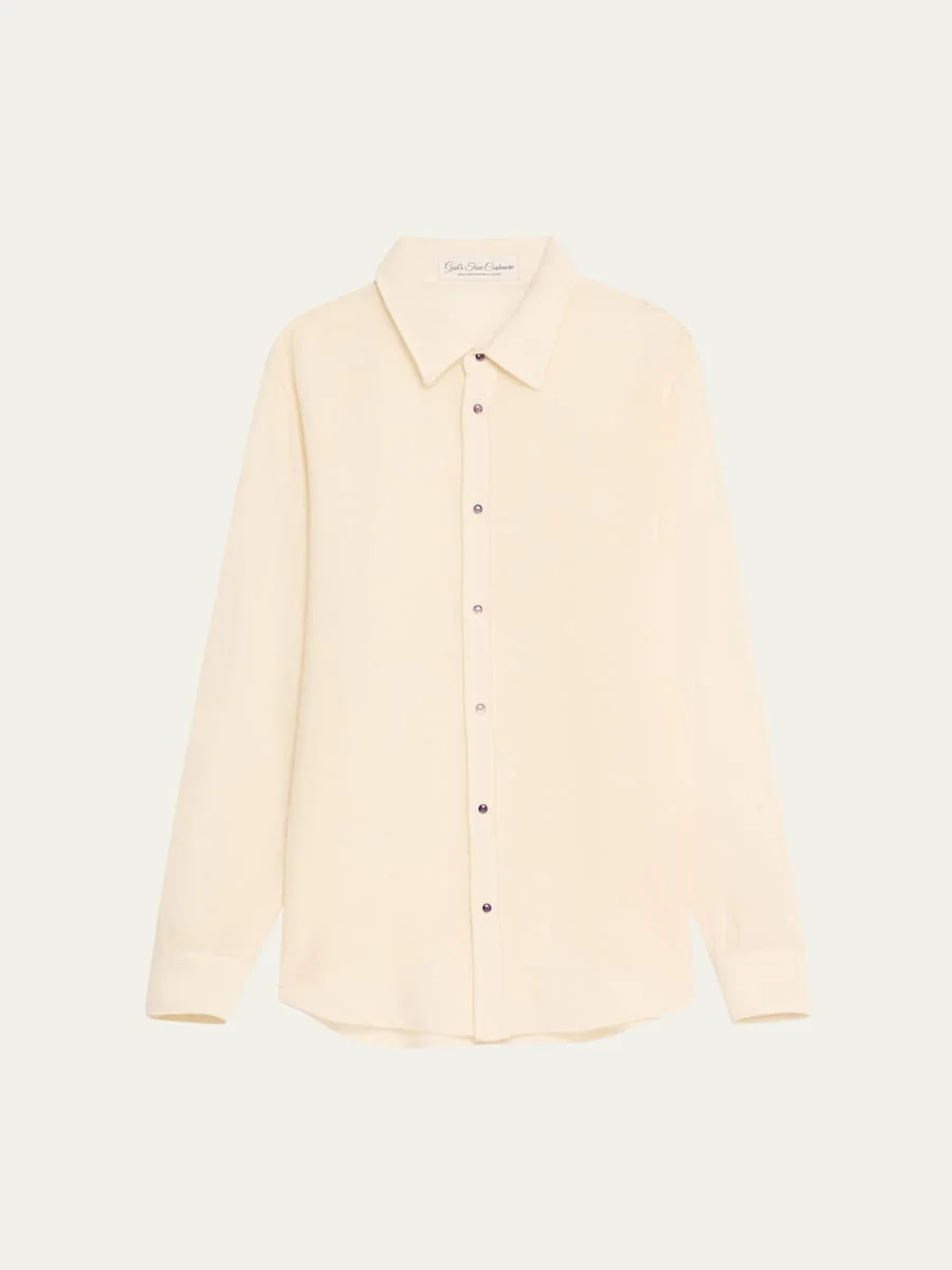 God's True Cashmere gauze solid shirt with contrast colored buttons Spread collar; button closure Long sleeves; button cuffs Relaxed fit Cashmere Made in Italy Online Inquiries: BGS21_B9X8U| Store Inquiries: #4992446
