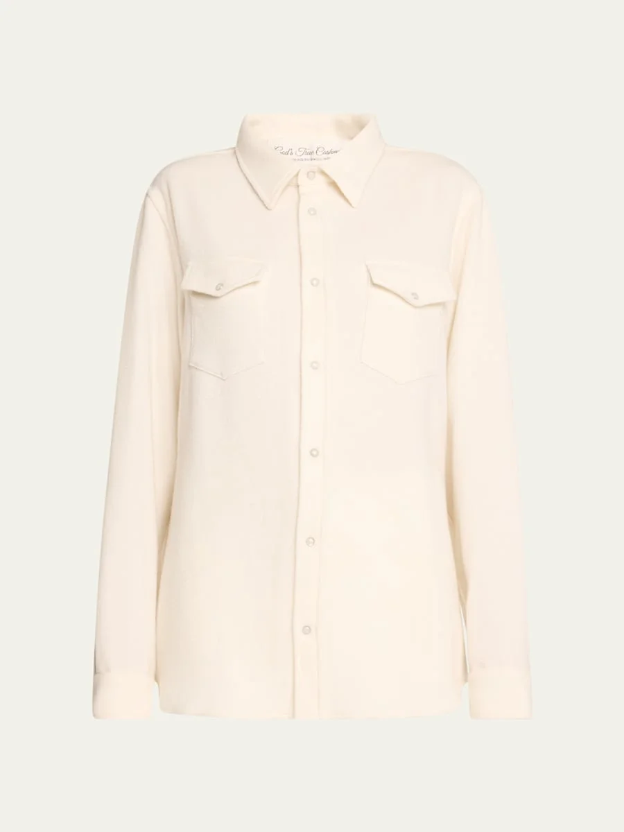 God's True Cashmere knit shirt Point collar; snap front closure Chest flap pockets with snap closures Long sleeves; snap cuffs Hip length Relaxed fit Cashmere Unlined Hand wash or dry clean Made in Italy Model is 5'10"/177cm. Online Inquiries: BGS21_B9DFW| Store Inquiries: #4847651