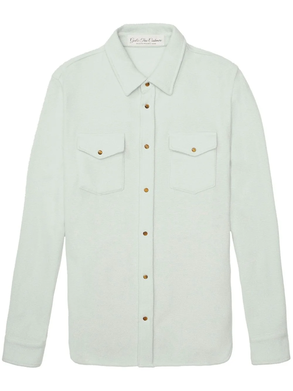 cashmere shirt Highlights - Mint green - Front press-stud fastening - Two chest flap pockets - Buttoned cuffs - When buying this unisex item, keep in mind that it is graded in standard men's sizing. Made in Italy Composition Tiger eye 100%, Cashmere 100%