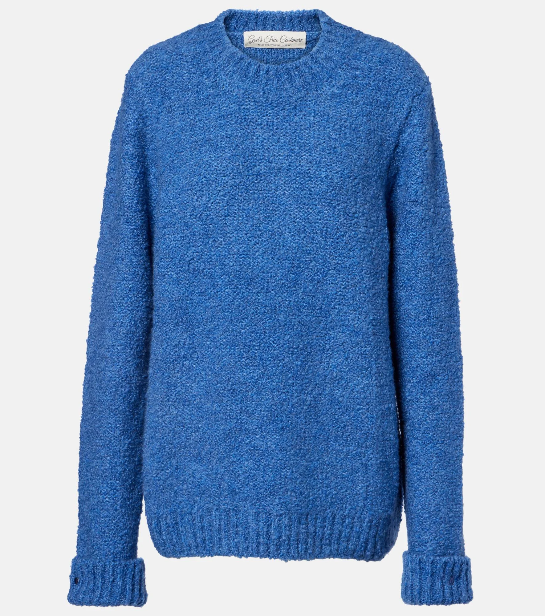 Crafted from soft cashmere, this God's True Cashmere sweater is an essential wardrobe staple for cold-weather seasons. The style features a crewneck and ribbed trims for an elegant touch. Product Details - Material: 100% cashmere - Care instructions: hand wash cold - Made in Italy - Designer color name: Denim Blue/Lapis Lazuli - Item color: blue - Collar: crewneck - Cuff: ribbed - Pockets: internal pocket - Hem: ribbed - Includes: dust bag - Item number: P01076991 Size & Fit - True to size - Designed for a loose fit - Slightly stretchy fabric - Falls below the hip - The model seen in the picture is 178cm-5'10" and wearing a size XS