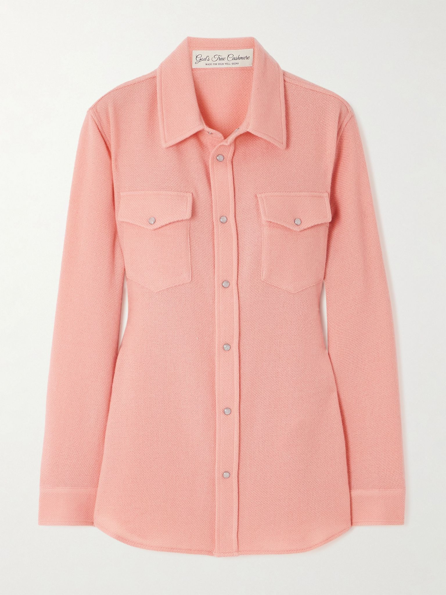 Each detail of God's True Cashmere's pieces is thoughtfully considered and meaningful. This shirt has been crafted in Italy from the namesake yarn, in a relaxed fit with point-flap pockets. The buttons are set with hand-carved moonstone cabochons, thought to bring balance and harmony. Size & Fit - Fits true to size, take your normal size - Designed for a slightly loose fit - Mid-weight knit - Model is 180cm/ 5'11" and is wearing a size Small Model measurements: - Bust: 85cm/ 33.5" - Waist: 62cm/ 24.5" - Hip: 88cm/ 34.5" Details & Care - Coral cashmere - Snap fastenings through front - 100% cashmere - Hand wash - Designer color: Peach Blush
