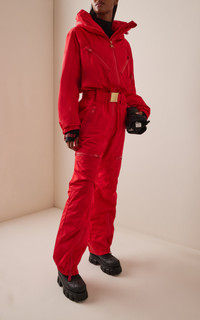 Luxury sportswear label Goldbergh imagines what the modern woman wants to pack in her suitcase when traveling to the slopes (think: fashionable and functional). The 'Discover' ski suit is made with a water-resistant, wind-breaker tech fabric to keep you as dry and warm as possible. It features an easy, zipped finish, ample pockets, snow gaitors, and a pillowy hood. PRODUCT DETAILS - Suitable for sporting conditions - Resort '26 - Zip fastening through front - Composition: 100% Recycled Polyester - Designer color: Flame - Dry clean only - Imported SIZE & FIT - Our model is wearing a size FR 34 - Model is 5'10" with a 30" bust, 24" waist, and 34" hip - Designed for a regular fit