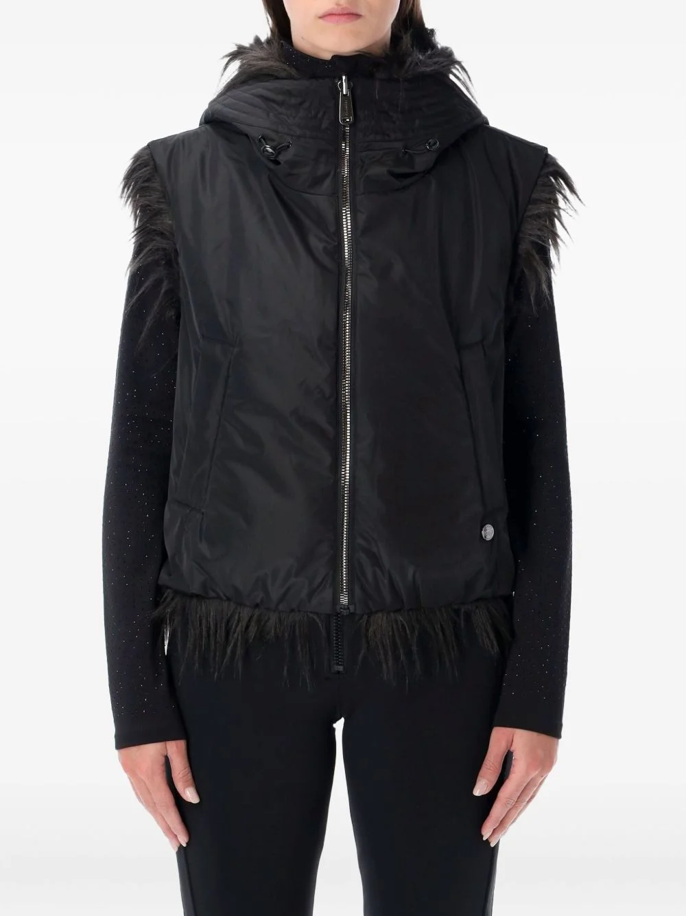 faux-fur hooded gilet Highlights - Black - Faux-fur trim - Hooded design - Zip fastening - Front pocket - Sleeveless Imported Composition Polyester 100%