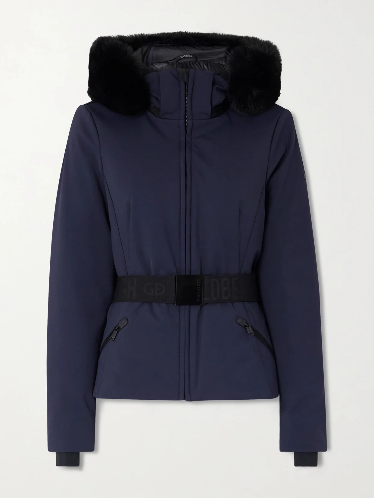 Goldbergh's 'Hida' jacket might look chic and streamlined but the brand has made sure you're ready for the slopes by adding plenty of functional details, like the removable snow skirt. Made from waterproof shell, it's filled with insulating down and features a detachable hood with a soft faux fur trim. It's belted at the waist and has knitted cuffs with thumbholes.